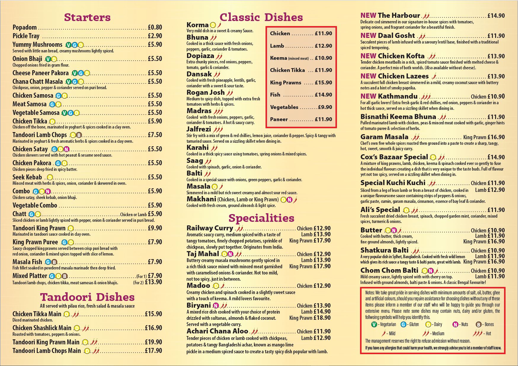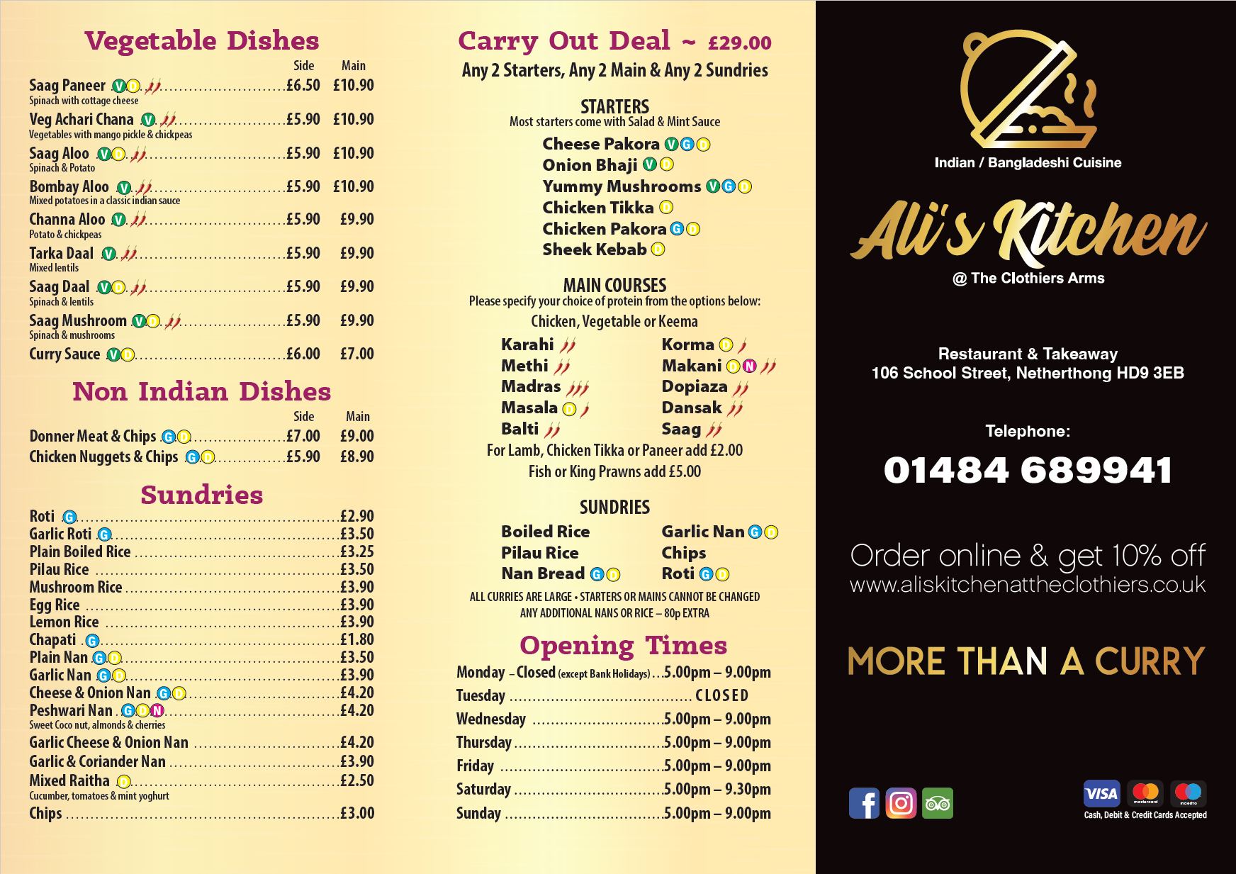 Here at the ALI’S KITCHEN at the Clothiers Arms, you will experience striking hand-picked tastes not just from India, but we’re bringing you tastes from the wider regions of Bangladesh too. Please be our guest and join us in this wild and exotic adventure.